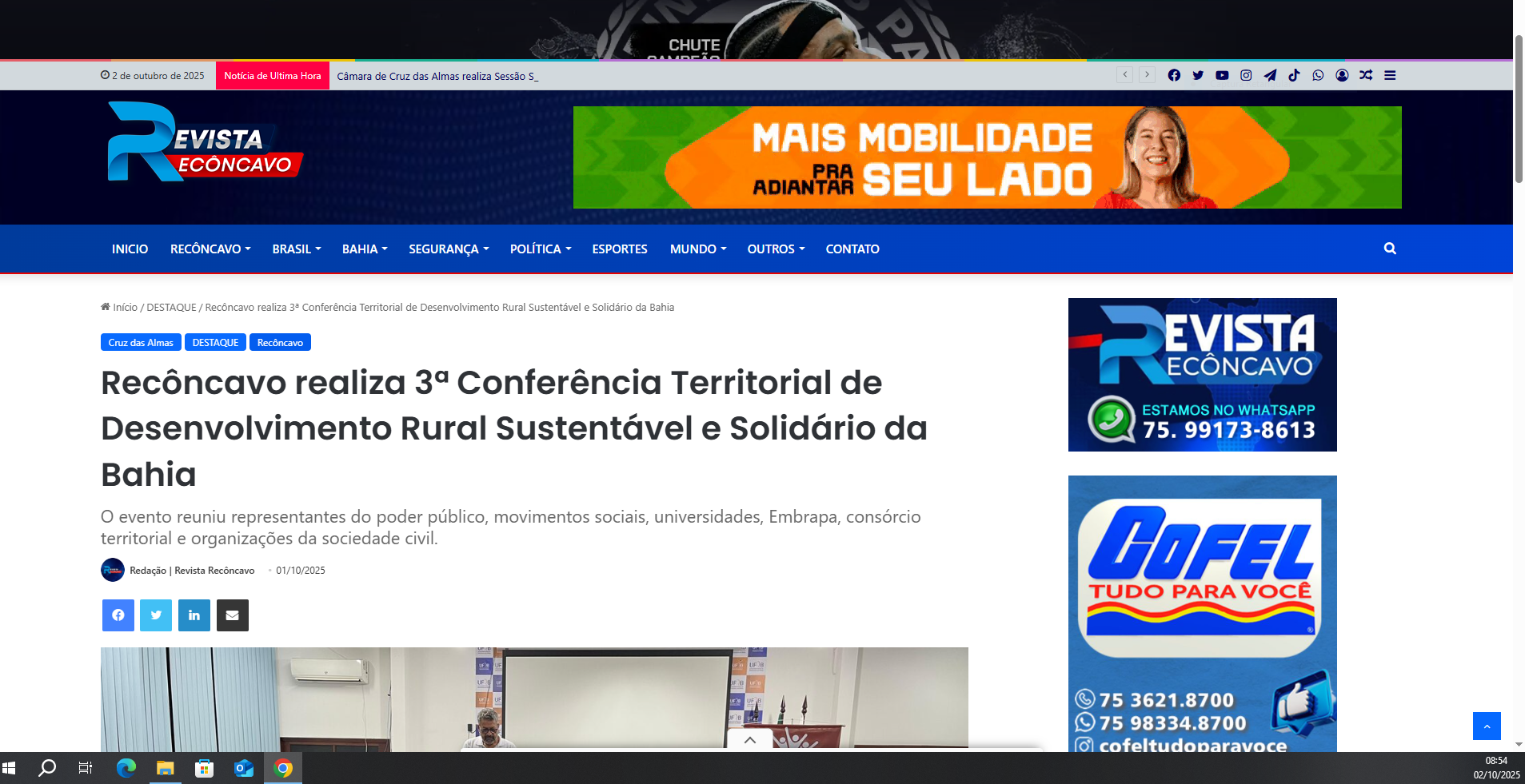Data: 01/10/2025 - Fonte: Revista Recôncavo - Mídia: Online - Arquivo