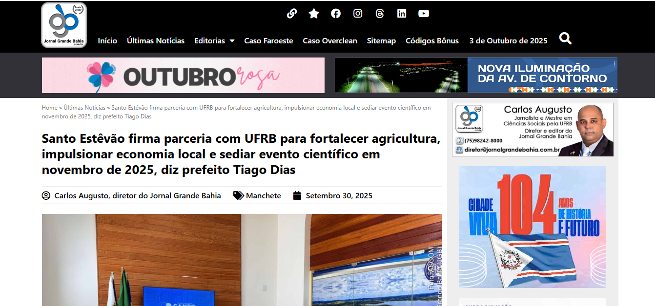 Data: 04/10/2025 - Fonte: Jornal Grande Bahia - Mídia: Online - Arquivo