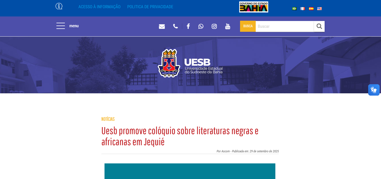 Data: 29/09/2025 - Fonte: UESB - Mídia: Online - Arquivo