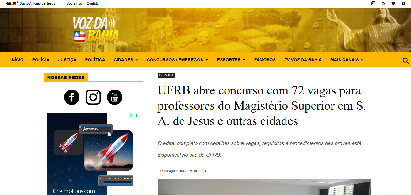 Data: 18/08/2025 - Fonte: Voz da Bahia - Mídia: Online - Arquivo