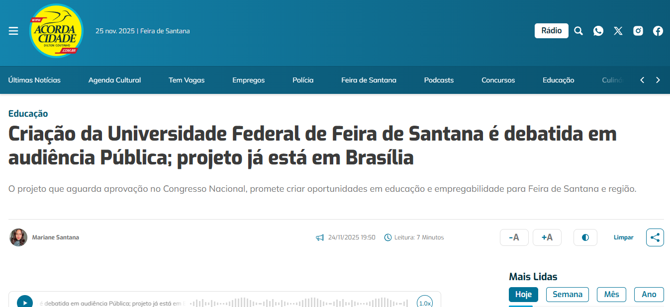 Data: 24/11/2025 - Fonte: Câmara Feira de Santana - Mídia: Online - Arquivo