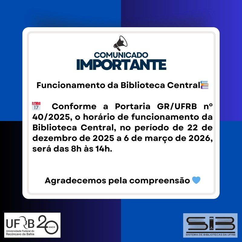 FUNCIONAMENTO DA BIBLIOTECA CENTRAL (22/12/25 à 06/03/26))