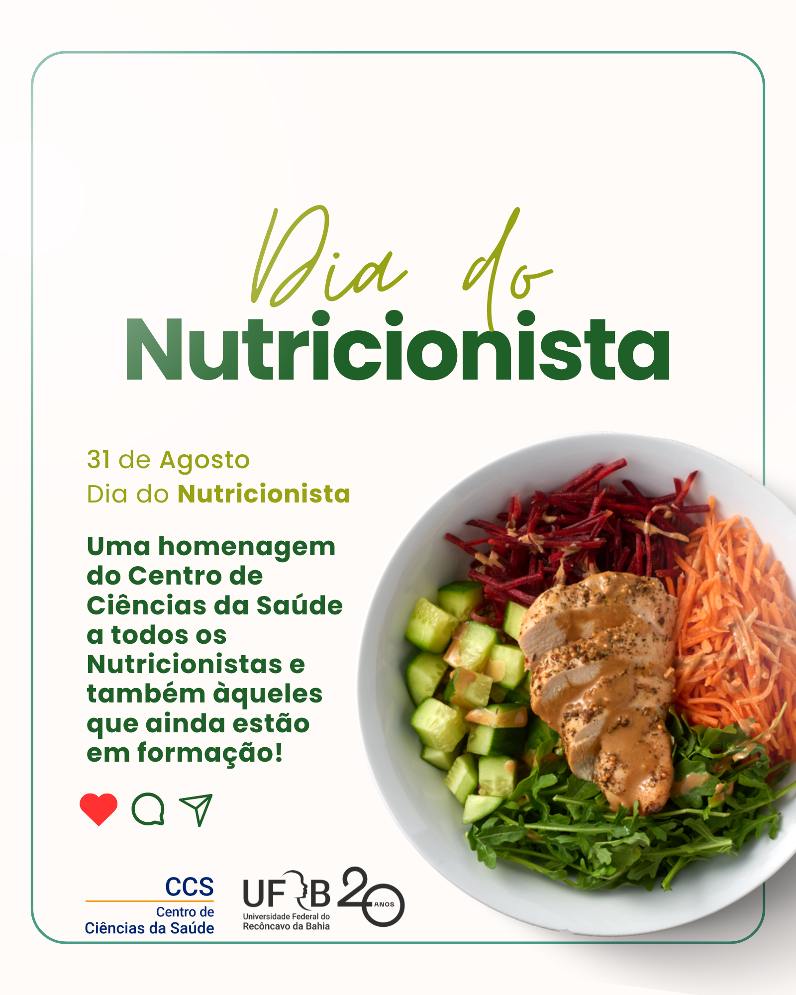Uma homenagem do Centro de Ciências da Saúde a todos os Nutricionistas e também àqueles que ainda estão em formação!