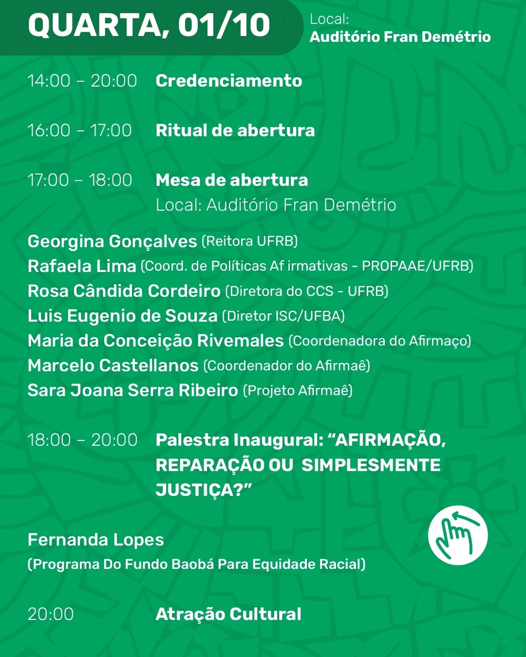 Entre os dias 01 e 03 de outubro, aqui no Centro de Ciências da Saúde da Universidade Federal do Recôncavo da Bahia (CCS/UFRB), em Santo Antônio de Jesus - BA.