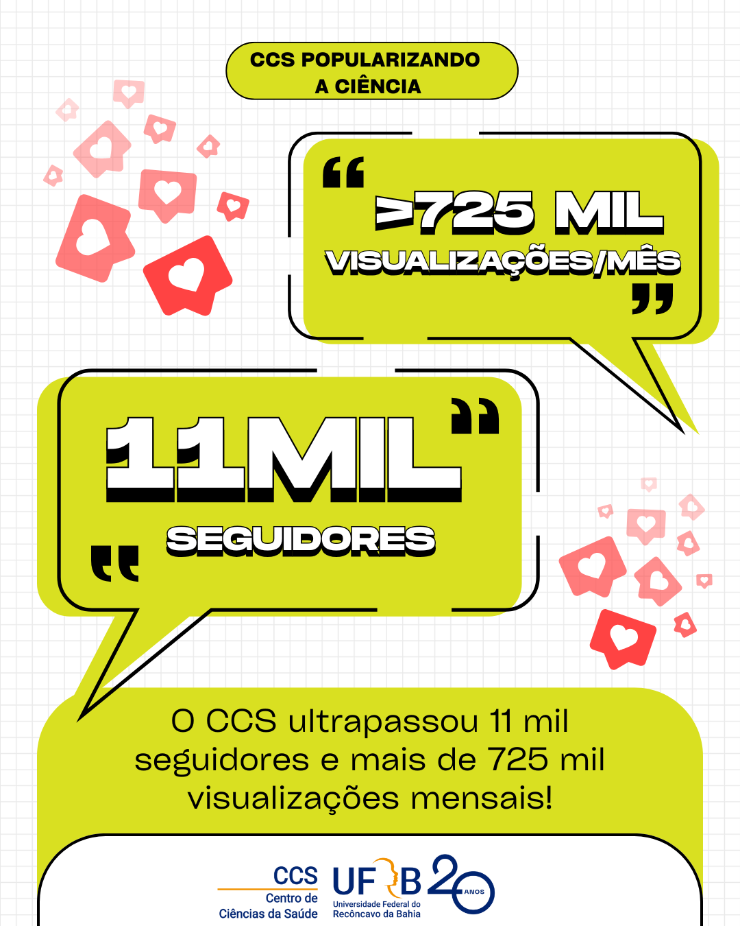 O Centro de Ciências da Saúde expressa profunda gratidão a todos que contribuíram para esse resultado — estudantes, docentes, técnicos e seguidores — que interagem, compartilham e acreditam na importância de comunicar a ciência de forma democrática.
