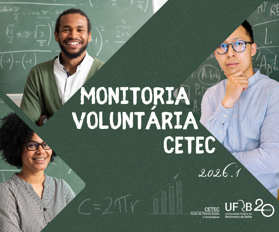 O Centro de Ciências Exatas e Tecnológicas (CETEC) da Universidade Federal do Recôncavo da Bahia (UFRB) informa que entre os dias 10/12/2025 a 09/02/2026 estarão abertas as inscrições...