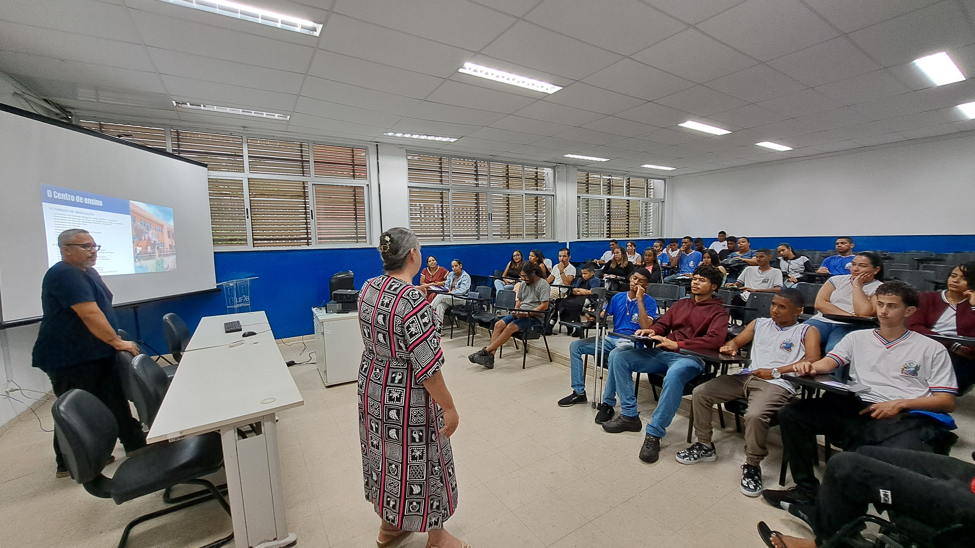 Os alunos foram recepcionados calorosamente pela diretora do Centro, professora Creuza Souza Silva, pelo vice-diretor e assessor Fernando Henrique Tisque dos Santos, e pelo professor Fábio Falcão Oliveira, coordenador do Colegiado do Curso de Licenciatura em Filosofia.