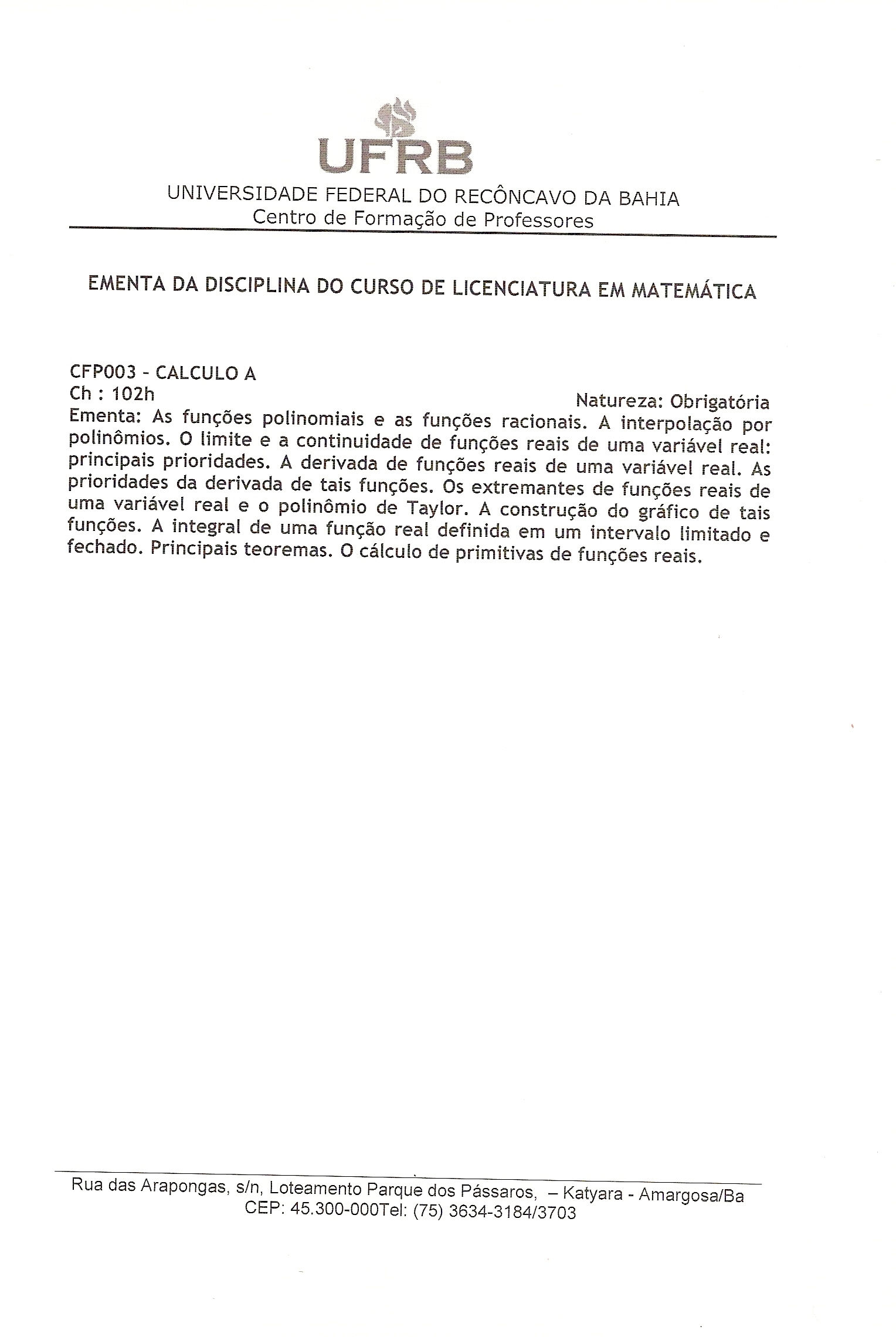 CFP 065 Fundamentos de Matemtica Elementar II-A
