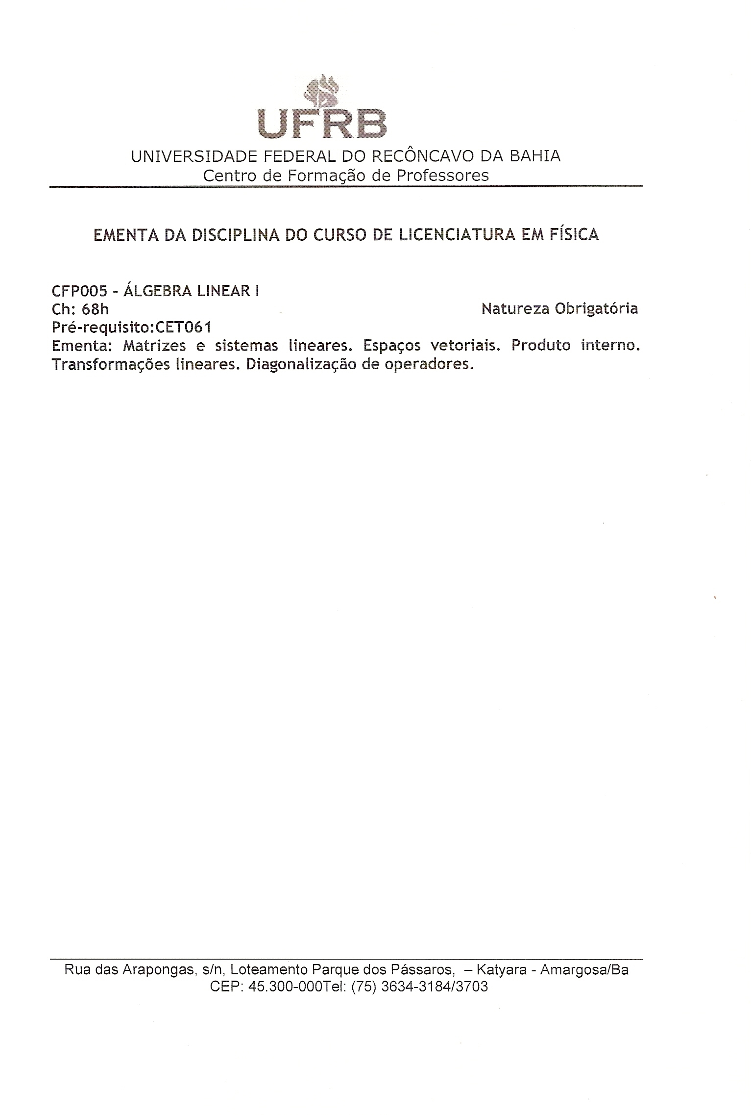 CFP 005 lgebra Linear I