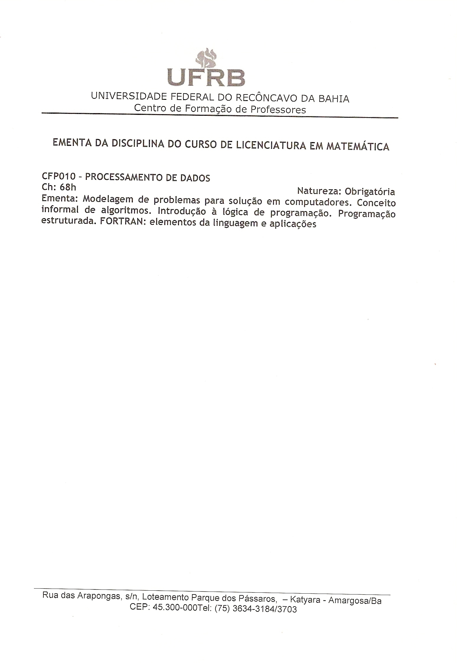 CFP 010 Processamento de Dados