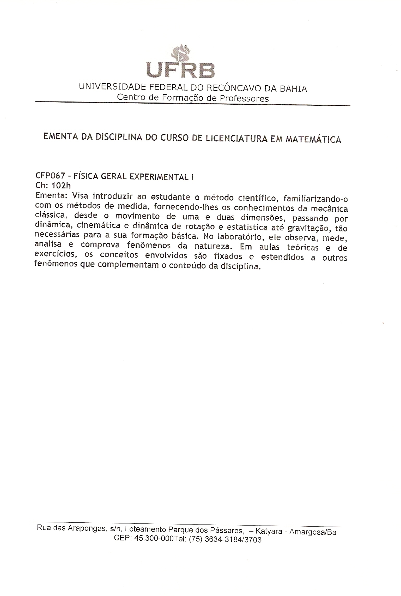 CFP 067 Fsica Geral Experimental I