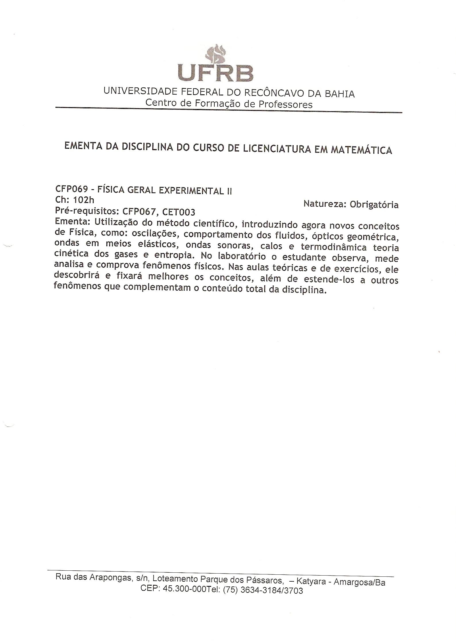 CFP 069 Fsica Geral Experimental II