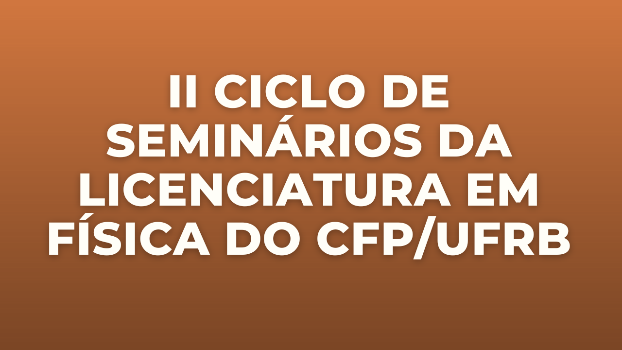 A atividade consiste em um conjunto Seminários realizados por docentes da Área de Conhecimento Física e Sociedade do CFP/UFRB, e por docentes externos, de outros Centros da UFRB e outras Instituições de Ensino (e.g., UFBA, UEFS, IFBA e IFBaiano), sobre temas de suas pesquisas. Nesta segunda edição do Ciclo serão realizados entre doze e vinte Seminários, um a cada quinzena ou mês no período de agosto/2021 a agosto/2022. Esta iniciativa visa dar continuidade a uma ação iniciada no I Encontro da Licenciatura em Física da UFRB - realizado em set/2016, a saber, a apresentação e discussão de temas diversos das Áreas de Física e Ensino de Física. Buscamos, ainda, adquirir expertise para torná-lo uma ação permanente, tendo em vista as importantes contribuições que pode trazer para a comunidade acadêmica e não acadêmica de Amargosa/BA.