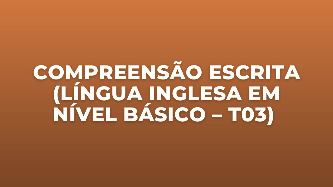 Curso voltado para a introdução de estratégias que auxiliem o(a)s aluno(a)s na compreensão escrita em língua inglesa em nível básico. Desenvolvimento de competências leitoras. Identificação e prática de estratégias de compreensão escrita. Reconhecimento de gêneros textuais. Estratégias de ampliação de conhecimento de léxico