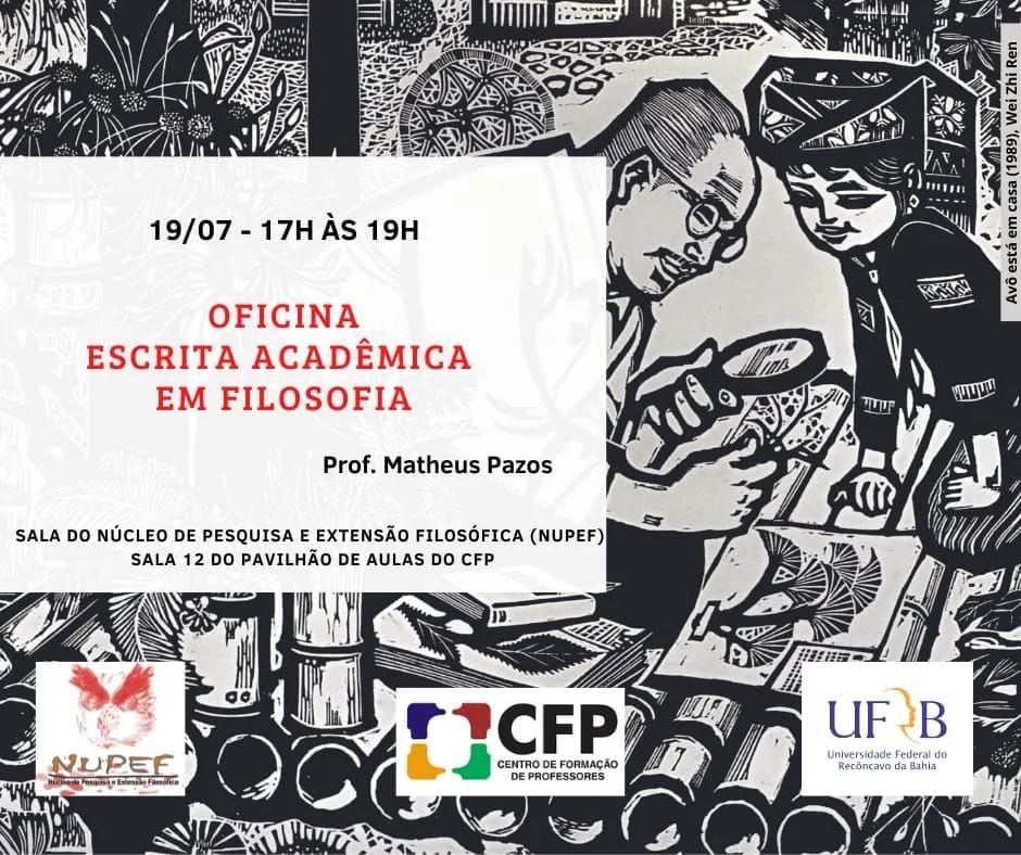 A oficina tem por objetivo apresentar recursos teóricos para o aprimoramento da escrita acadêmica em filosofia.Ademais, tem por objetivo específico apresentar os passos necessários para a submissão de artigos científicos em revistas voltadas para graduandas e graduandos em filosofia.Link para inscrição com certificação: https://sistemas.ufrb.edu.br/sigaa/link/public/extensao/visualizacaoAcaoExtensao/91796003