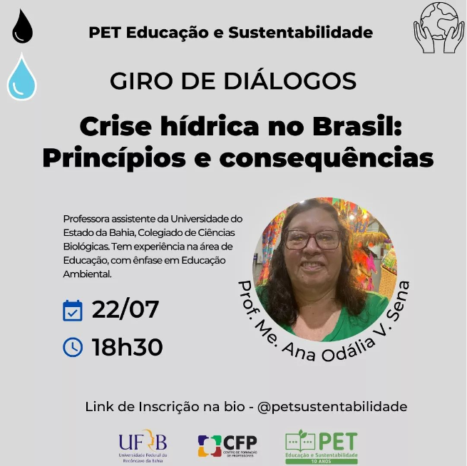 A atividade tem como proposta um roda de conversa com partilhas e trocas de conhecimentos, a ser realizada virtualmente às 18h30 nas sextas-feiras. O primeiro encontro de 2022 terá como tema: Crise hídrica no Brasil: princípios e consequências.