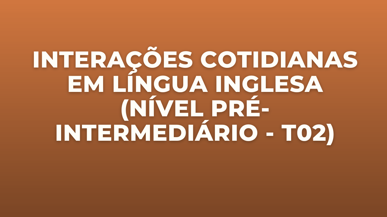 Curso de língua inglesa em nível pré-intermediário focando em interações em contexto informal sobre temas cotidianos. Reconhecimento e prática de funções discursivas da língua inglesa e gêneros que circulam no dia a dia do indivíduo e das comunidades em que ele está inserido. Reconhecimento das características dessas funções e gêneros. Reconhecimento dos elementos de discurso, gramática e vocabulário dessas funções e gêneros.