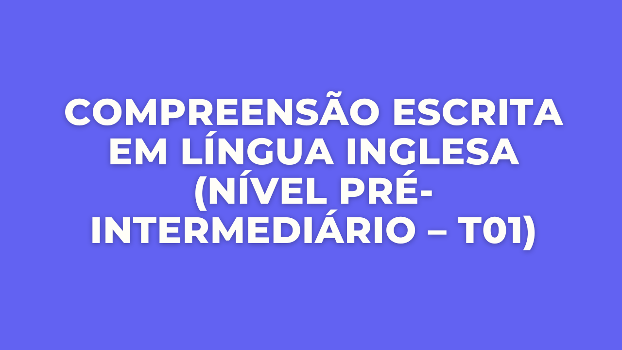 Curso voltado para a introdução de estratégias que auxiliem os alunos na compreensão escrita em língua inglesa em nível pré-intermediário. Desenvolvimento de competências leitoras. Identificação e prática de estratégias de compreensão escrita. Reconhecimento de gêneros textuais. Estratégias de ampliação de conhecimento de léxico.