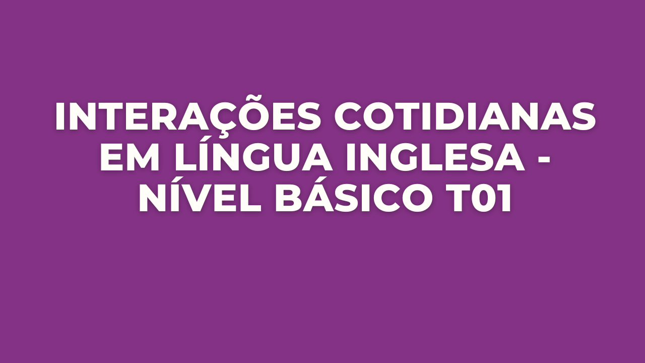 Curso de língua inglesa em nível básico focando em interações em contexto informal sobre temas cotidianos. Reconhecimento e prática de funções discursivas da língua inglesa e gêneros que circulam no dia a dia do indivíduo e das comunidades em que ele está inserido. Reconhecimento das características dessas funções e gêneros. Reconhecimento dos elementos de discurso, gramática e vocabulário dessas funções e gêneros.