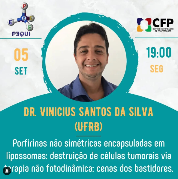 Após o recesso de um semestre para o outro, retomamos o fôlego e desejamos que todos tenham um período tranquilo e muito produtivo. No dia 05/09/2022, teremos o nosso primeiro encontro do Grupo de Estudos do PƎQUI do Semestre Letivo 2022.1.Tema do encontro:Porfirinas não simétricas encapsuladas em lipossomas: destruição de células tumorais via terapia não fotodinâmica: cenas dos bastidores.Com o Prof. Dr. Vinicius Santos da Silva @vinicius.sdasilva , foi professor do curso de Licenciatura em Química do CFP/UFRB e atualmente é docente da Área de Química e Bioquímica do Centro de Ciências Exatas e Tecnológicas (CETEC) da UFRB em Cruz das Almas.Sugerimos que possam baixar e fazer a leitura do texto indicado pelo professor Larissa (link disponível nos comentários), construído com demais pesquisadores, intitulado “Porfirinas não simétricas encapsuladas em lipossomas: Destruição de células tumorais via atividade não fotodinâmica”. Aproveite esta oportunidade para dialogar e tirar dúvidas com ele, uma dos autores do artigo. Contamos com a presença de todos os membros do PƎQUI.Mediação da Prof. Dr. Yuji Nascimento Watanabe (UFRB)@yuji.ssaHaverá lista de presença.Para obter a certificação do grupo de estudos os seus integrantes devem ter mais de 75% de frequência.Este é um evento interno do PƎQUI.