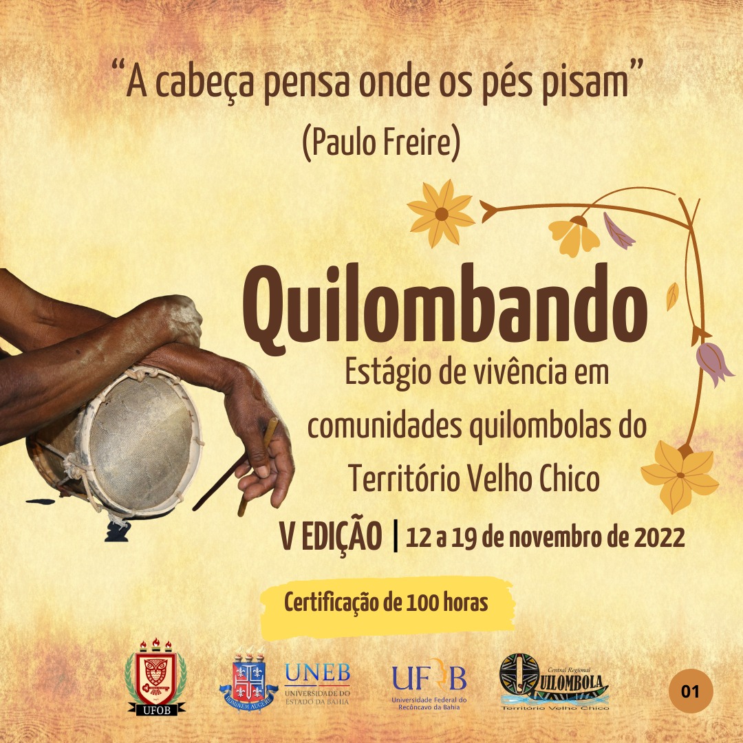 Maiores informações em https://ufrb.edu.br/cfp/eventos/1673-quilombando-estagio-de-vivencia-em-comunidades-quilombolas-do-territorio-velho-chico