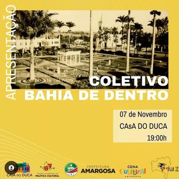 Nesse evento, o coletivo Bahia de dentro pretende receber amigos que contribuem para o seu trabalho de pesquisa, apresentar suas pesquisadoras, e a experiência que vem sendo desenvolvida com o objetivo de fomentar a História Local.A programação contará com lançamento do documentário "Caminhos, histórias e memórias de Pedro Calmon em Amargosa", de autoria da Prof Ana Carla Nunes em parceria com o Coletivo Bahia de Dentro, exposição fotográfica "Retratos da memória: Patrimônios Materiais de Amargosa e para finalizar, teremos também um momento de valorização da cultura com artistas que representam a riqueza e a diversidade musical do interior da Bahia.? Contamos com a sua presença!? Fica ligado(a) para acompanhar a divulgação da programação que tá incrível e diversa!