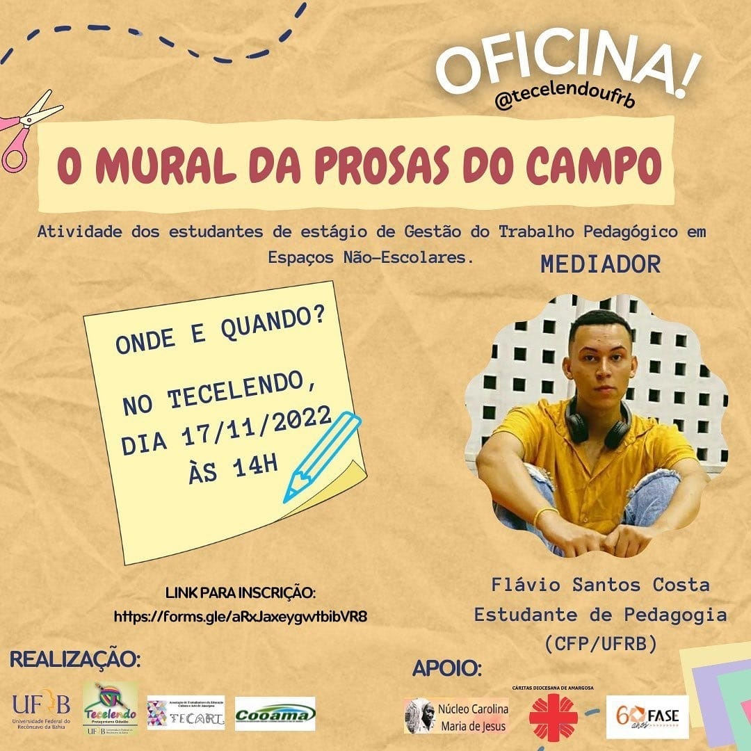 Mediador: Flávio Costa (Graduando de Pedagogia da UFRB)Horário: 14h