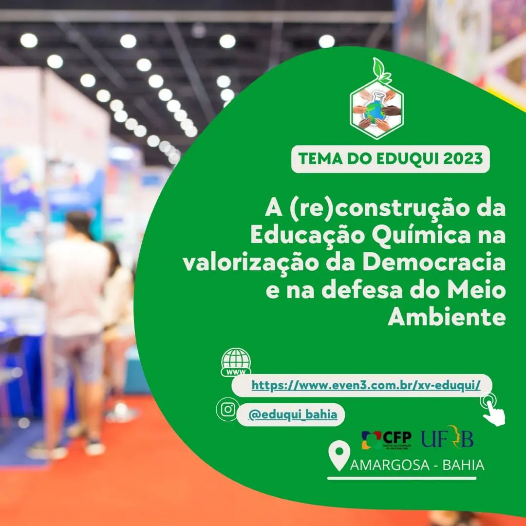 É com muita alegria que, nós, do Centro de Formação de Professores (CFP) da Universidade Federal do Recôncavo da Bahia (UFRB) informamos que a próxima edição do EDUQUI acontecerá nos dias 16, 17 e 18 de novembro de 2023 na cidade de Amargosa-BA, conhecida também como Cidade Jardim. Como é o XV EDUQUI, este é momento para debutarmos e dialogarmos sobre um tema que acreditamos ser pertinente para nossa atual conjuntura: "A (re)construção da Educação Química na valorização da Democracia e na defesa do Meio Ambiente". Assim, o nosso XV EDUQUI terá o compromisso de oportunizar discussões valiosas para refletir sobre a importância do conhecimento científico para a formação democrática de uma cidadania emancipada, a qual inclui a defesa do nosso Meio Ambiente, dentre outros debates pertinentes ressonantes com a Educação Química.