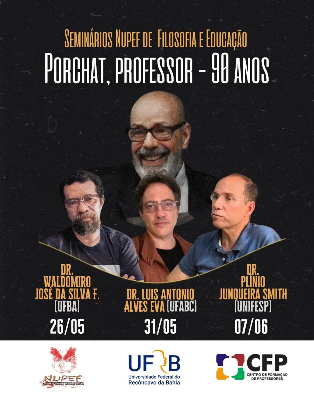 O III Seminário NUPEF de Filosofia e Educação pretende prestar uma homenagem ao Prof. Oswaldo Porchat por ocasião dos 90 anos do seu nascimento. O convidado para este evento é o Professor Waldomiro José da Silva Filho (UFBA). O evento está organizado como atividade de extensão associada ao componente Tópicos de Filosofia nodo Brasil.