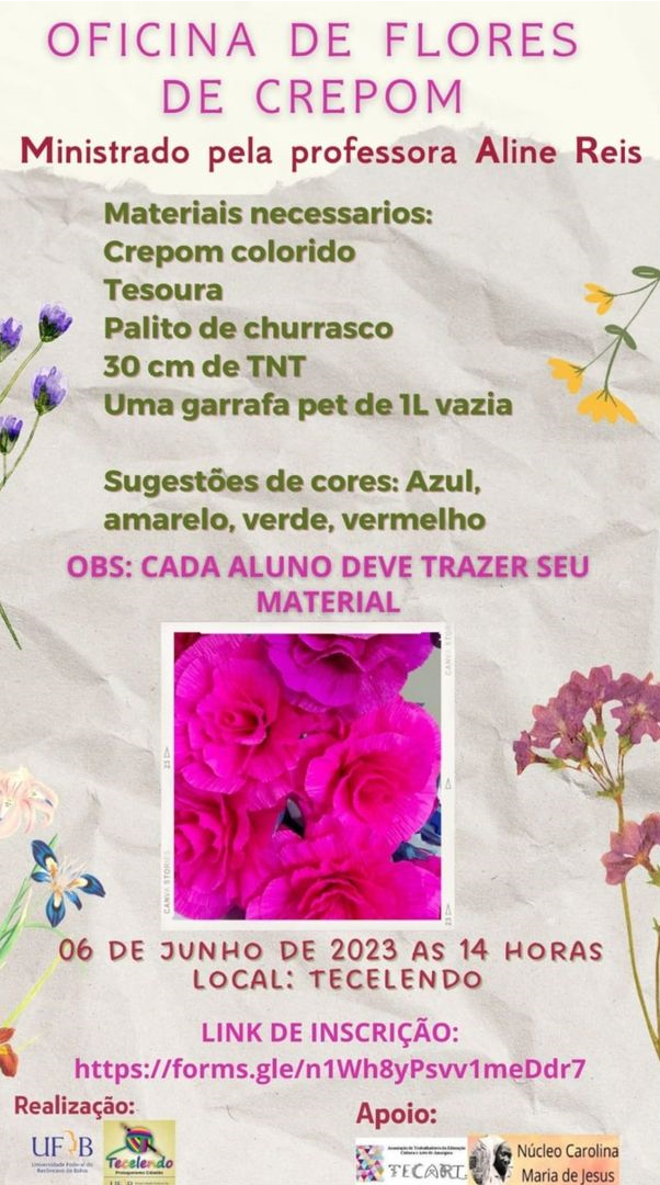 Oficina de flores de crepom com a Professora Aline Reis.