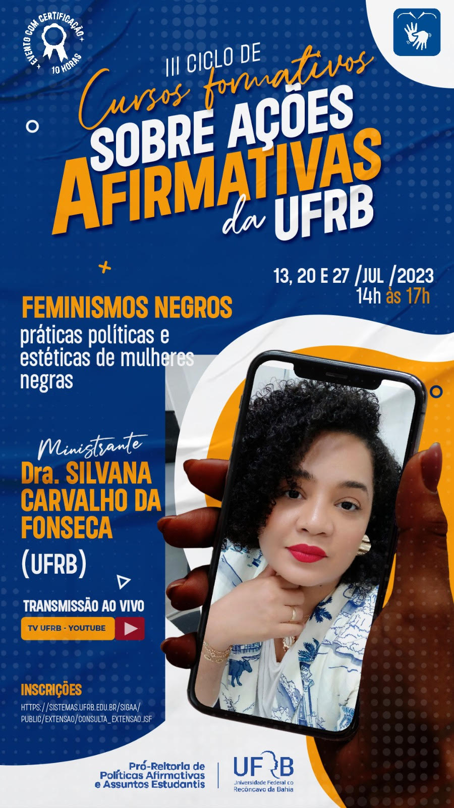 Inscrições abertas até 19/07: https://sistemas.ufrb.edu.br/sigaa/public/extensao/consulta_extensao.jsf
