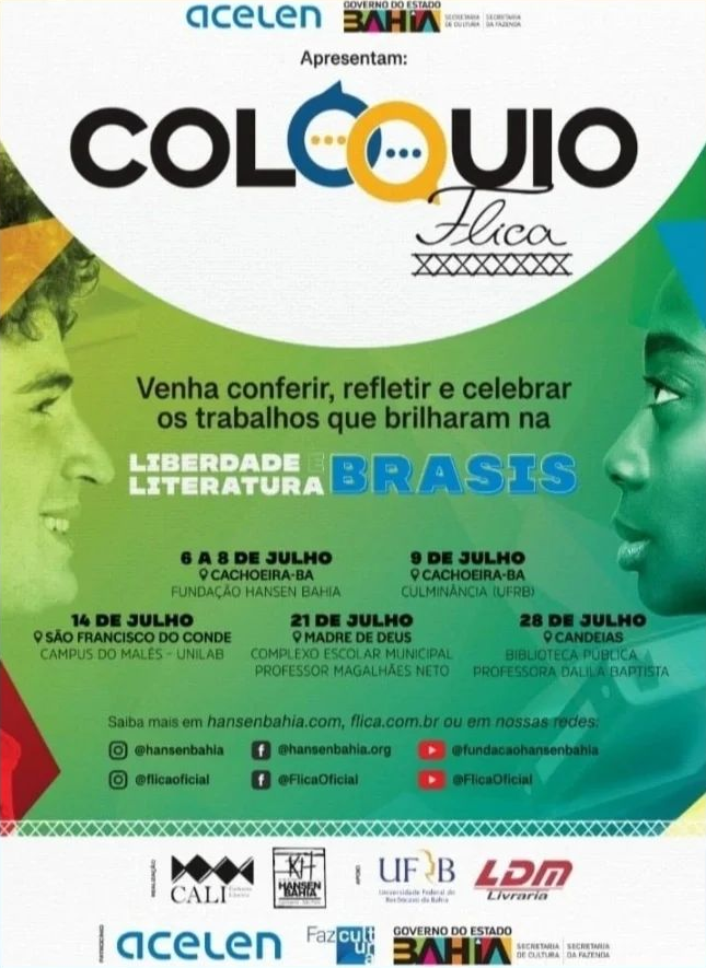 O Colóquio e os Seminários Flica, é uma realização da CALI — Cachoeira Literária e da Fundação Hansen Bahia (FHB). Tem parceria da Universidade Federal do Recôncavo da Bahia — Centro de Artes, Humanidades e Letras (UFRB — CAHL), e apoio institucional da LDM Livraria, o patrocínio da Empresa ACELEN e FAZCULTURA — Governo do Estado da Bahia.