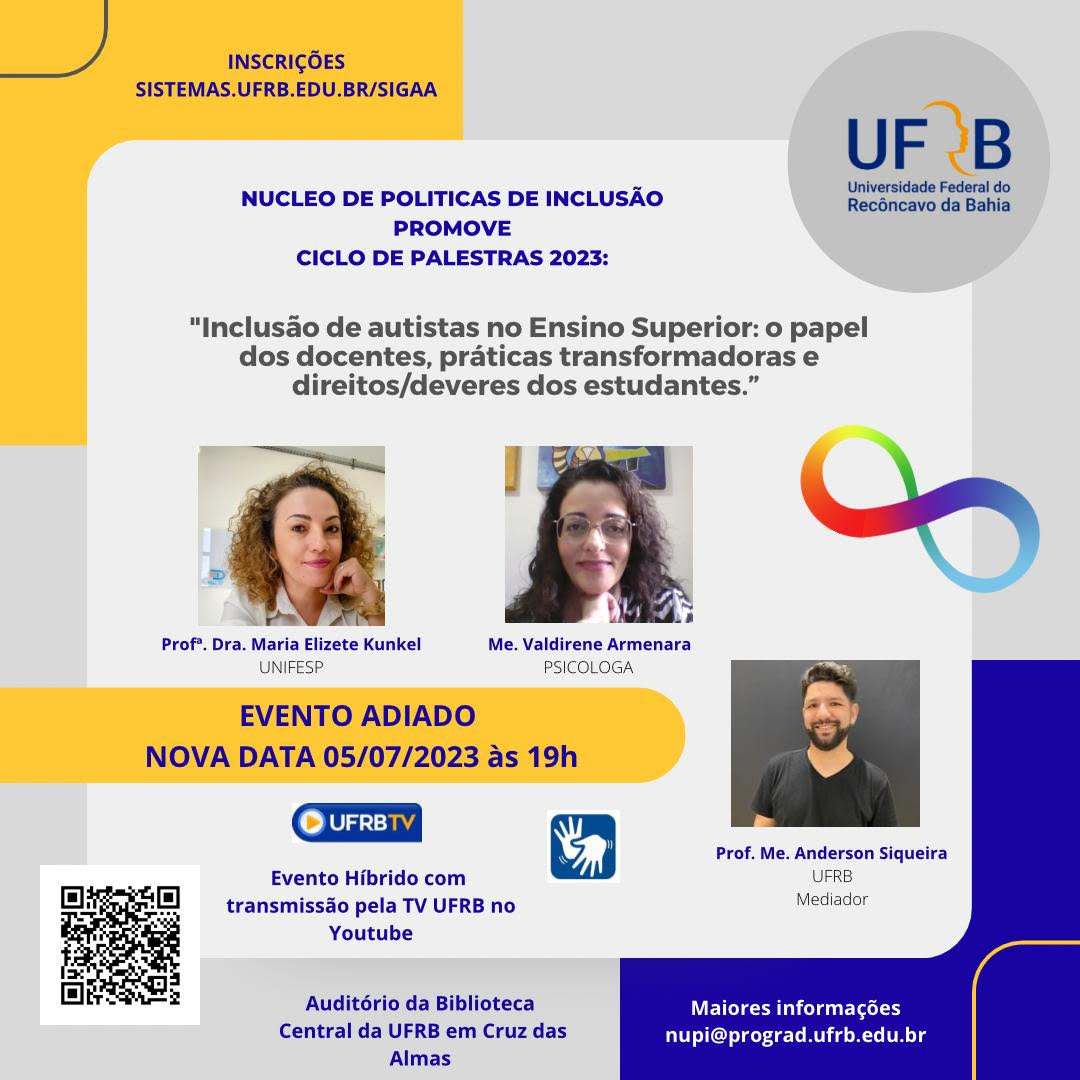 A inclusão dos alunos com Transtorno do Espectro Autista (TEA) é uma realidade na UFRB. Estes estudantes têm conseguido realizar o sonho de ingressar na graduação. Porém, eles possuem necessidades muito peculiares que exigem mudanças na conduta do docente e preparação da IES para realizar um acolhimento adequado para saber lidar com as características de comportamento destes estudantes.
