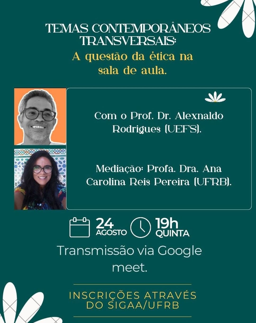 Inscrições até 21/09/2023, através do SIGAA: https://sistemas.ufrb.edu.br/sigaa/link/public/extensao/visualizacaoAcaoExtensao/91797908