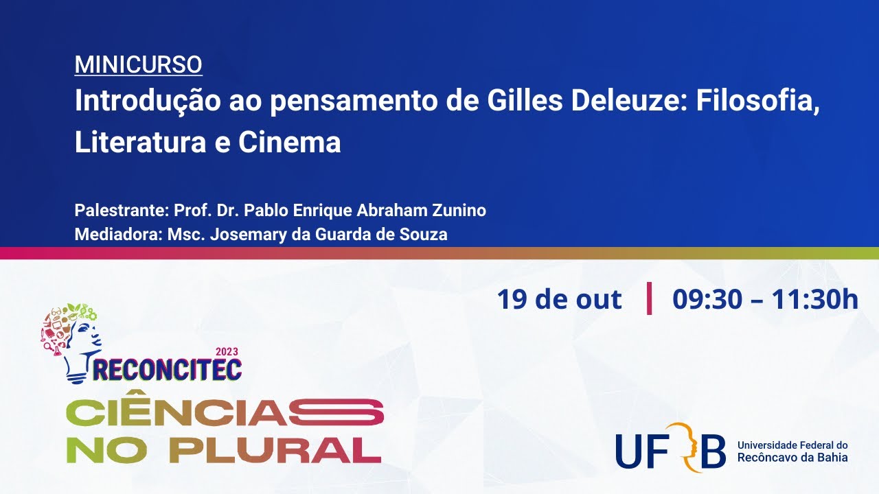 Este minicurso tem por objetivo oferecer uma Introdução ao pensamento de Gilles Deleuze, destacando as relações entre filosofia, literatura e cinema no conjunto da sua obra. Para tanto, o docente fará uma exposição inicial dos conceitos filosóficos que permitem compreender a filósofa da diferença como uma das contribuições mais originais e contundentes do pensamento contemporâneo, seguida da leitura coletiva de alguns capítulos de livros vinculados a temática proposta. Nesse sentido, s obra Proust e os signos (1964) merece destaque porquanto introduz a noção de “imagem do pensamento” que marcará profundamente o pensamento de Deleuze nas obras posteriores. Espera-se que o aluno tenha alguna familiaridade com a história da filosofia ou ao menos demonstre interesse na leitura de textos filosóficos e na compreensão teórica dos problemas que propõe este minicurso.