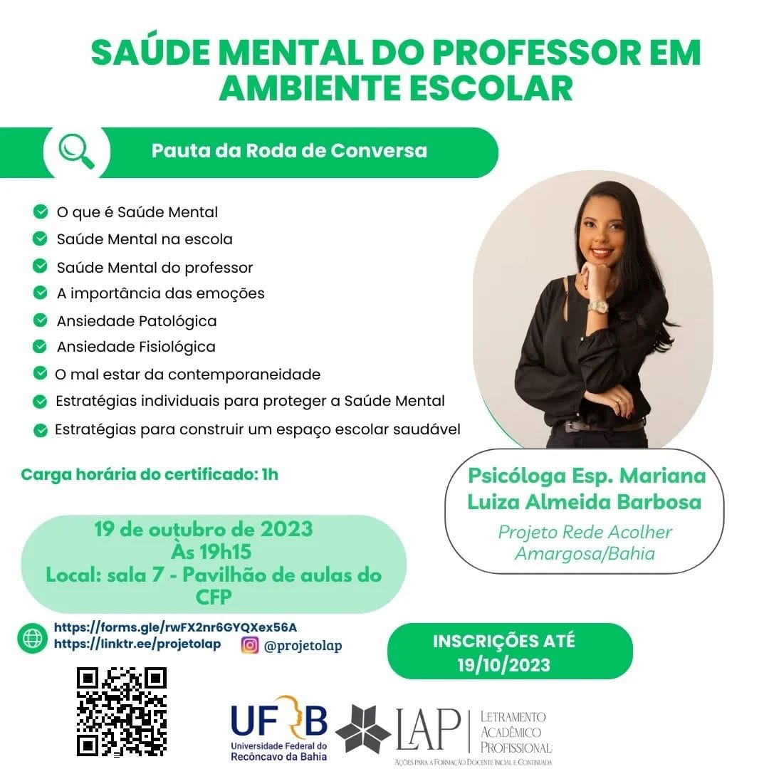 Sala 07 do Pavilhão de aulas - Inscrições até 19/10/2023