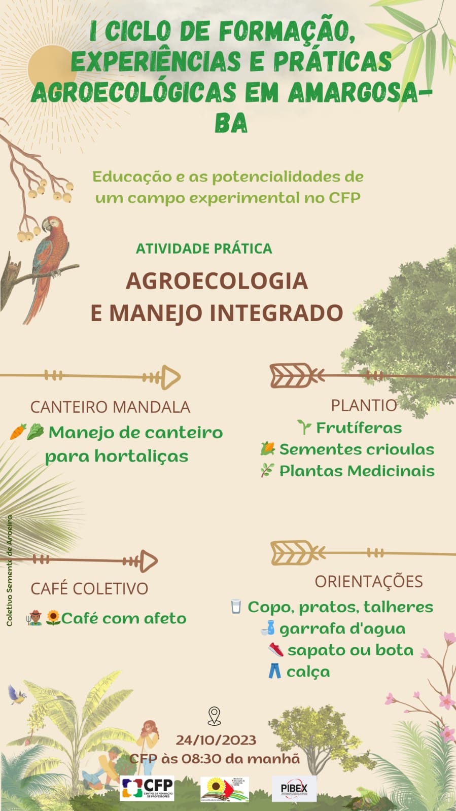 A atividade vinculada ao projeto 1º Ciclo de formação experiências e práticas agroecológicas em Amargosa - Bahia visa compartilhar as experiências relacionadas ao manejo de solo e produção agroecológica desenvolvidas pelos discentes da Licenciatura em educação do Campo.