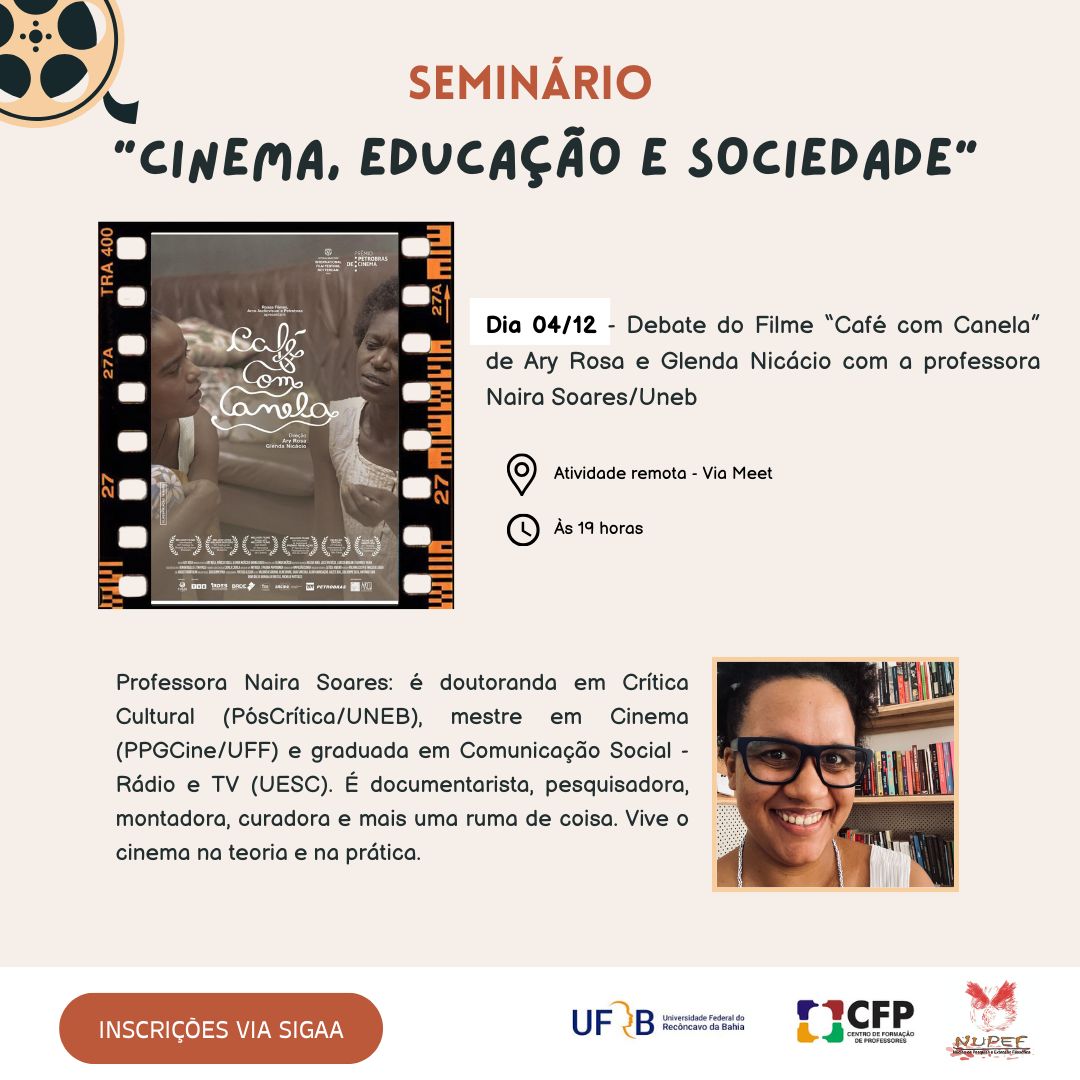 Entre os dias 04 e 05 dezembro e os dias 11 e 12 de dezembro o componente curricular “Cinema, Educação e Sociedade”realiza debates cinematográficos com intuito de aproximar a formação pedagógica a partir de outras linguagens. A atividade é aberta e online, contando com certificação de participação.
