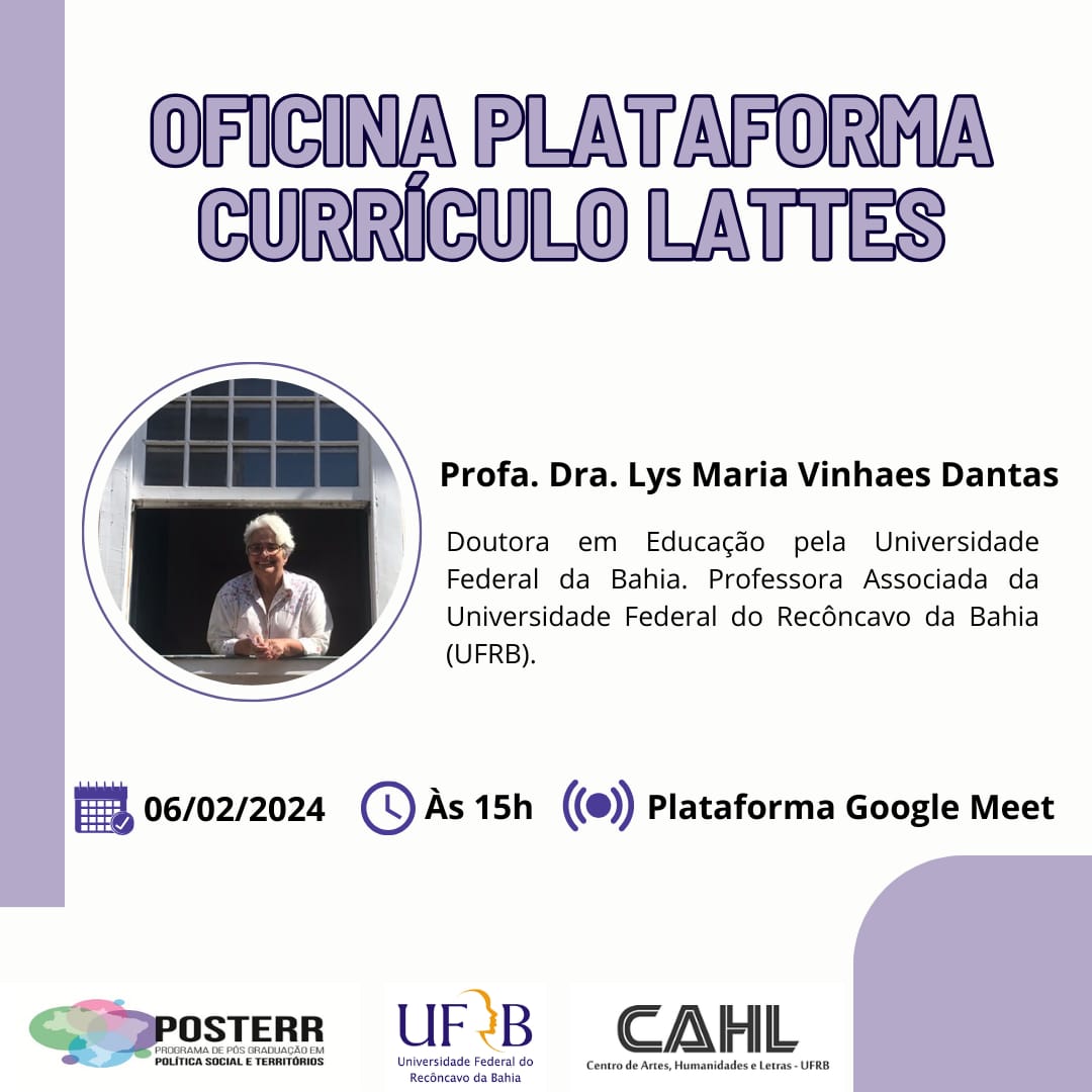 06 de fevereiro Oficina Atualização do Lattes através do Google Meet