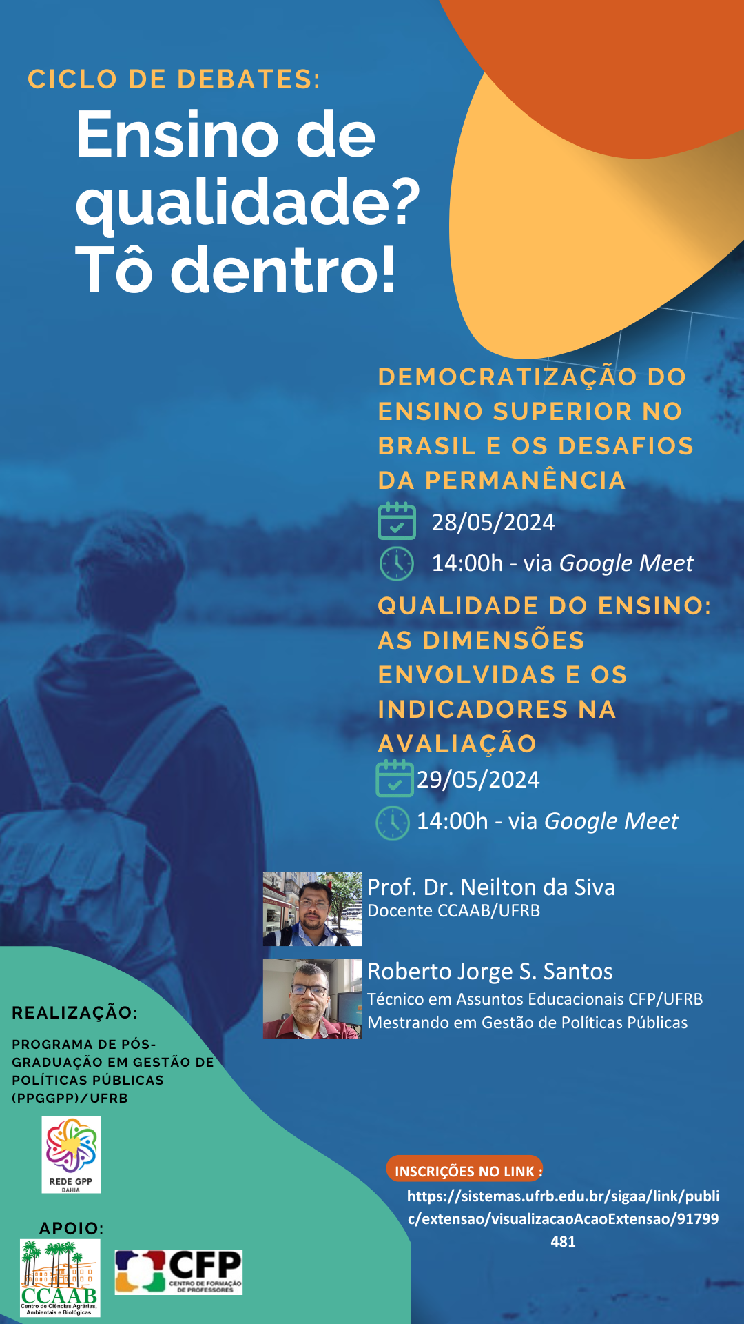 Para inscrição e certificação, acesse: https://sistemas.ufrb.edu.br/sigaa/link/public/extensao/visualizacaoAcaoExtensao/91799481