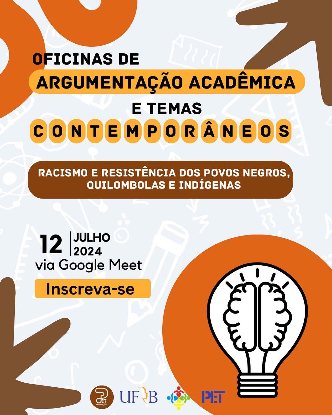 esta sexta (12/07), ocorre a nossa oficina “Racismo e Resistência dos Povos Negros, Quilombolas e Indígenas”. A oficina será ministrada por representantes do grupo PET AFIRMAÇÃO e mediada por Kaila Barreto.A oficina visa dialogar acerca dos métodos de enfrentamento ao Racismo a partir de vivências, produções e dinâmica de trabalho do Grupo Pet Afirmação.Nosso encontro está marcado para às 14:00 e o link de acesso será disponibilizado no grupo do WhatsApp para os participantes