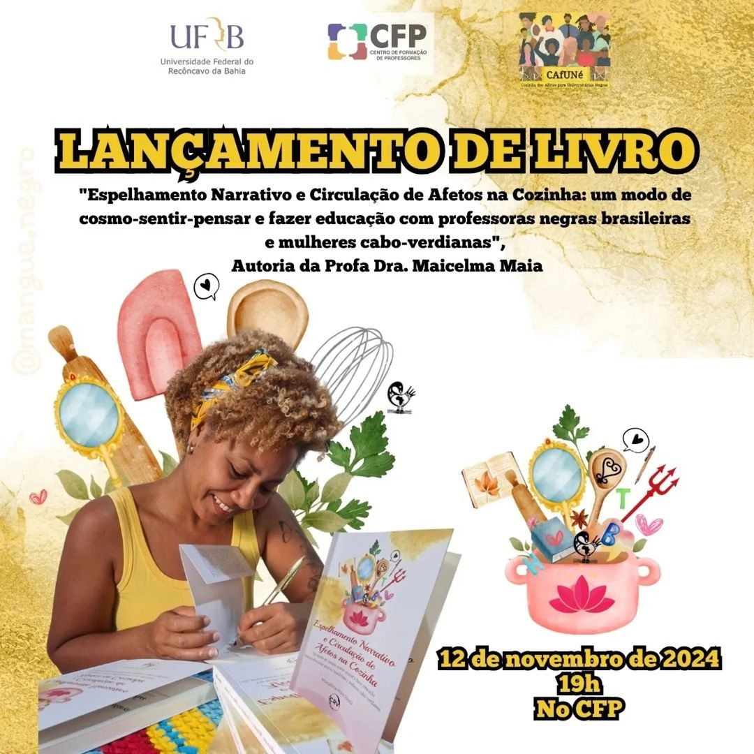 "Tudo pode ser dito com uma colher de mel na boca" é Sabedoria Africana para adoçar nossos sentidos na arte de comunicar.É também esta sabedoria que intitula a mesa de lançamento do livro "Espelhamento Narrativo e Circulação de Afetos na Cozinha: um modo de cosmo-sentir-pensar e fazer educação com professoras negras brasileiras e mulheres cabo-verdianas" de autoria da Profa Maicelma Maia.°•••★Na oportunidade, e com imensa alegria, estaremos ao lado da integrante do CAfUNé Laíla Maíse Anunciação, das Professoras Gisseila Garcia, da Universidade de Santiago, em Cabo Verde, Anete Abramowicz, Ivanise Gomes, Kiki Givigi e do Prof Carlos Adriano Oliveira trazendo o poder e o significado desta obra para educação afrodiaspóricas e africana.E, como se não bastasse toda essa beleza, ainda teremos a energia do Grupo Samba de Roda O Resgate para vibrar alto nessa noite!°•••》Minha gente, se prepare e aproveite essa oportunidade, porque... a gente não iria revelar, mas o valor do livro neste lançamento está imperdível!! Dia 12 de novembro, as 19h, contamos com vocês para deixar essa noite ainda mais saborosa, sim, saborosa, porque nossa cozinha estará ativa no Centro de Formação de Professor@s.Só vem!!