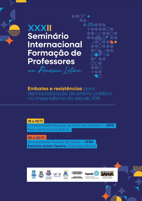 O XXXII Seminário Internacional sobre Formação de Professores na América Latina: embates e resistências para democratização do ensino público no imperialismo do século XXI será na Universidade Estadual de Feira de Santana nos dias 18 e 19 de novembro e no Instituto Anísio Teixeira e na Universidade Federal da Bahia nos dias 20 a 22 de novembro de 2024.