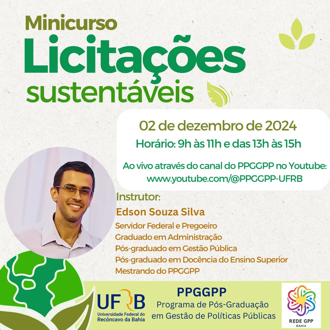 A ação extensionista será a realização de um mini curso intitulado "O papel das contratações sustentáveis nas políticas públicas". O objetivo é capacitar servidores públicos, estudantes de administração pública e interessados no tema, sobre como as contratações governamentais podem promover a sustentabilidade. A meta é fomentar a conscientização, disseminar conhecimentos e estimular a reflexão sobre a utilização de práticas sustentáveis nas contratações, com o objetivo de estimular e contribuir para a implementação de políticas públicas ambientais. O minicurso terá carga horária de 4 horas, divididas em dois momentos, e será transmitido ao vivo no canal do PPGGPP no Youtube: //www.youtube.com/@PPGGPP-UFRB">https://www.youtube.com/@PPGGPP-UFRB.