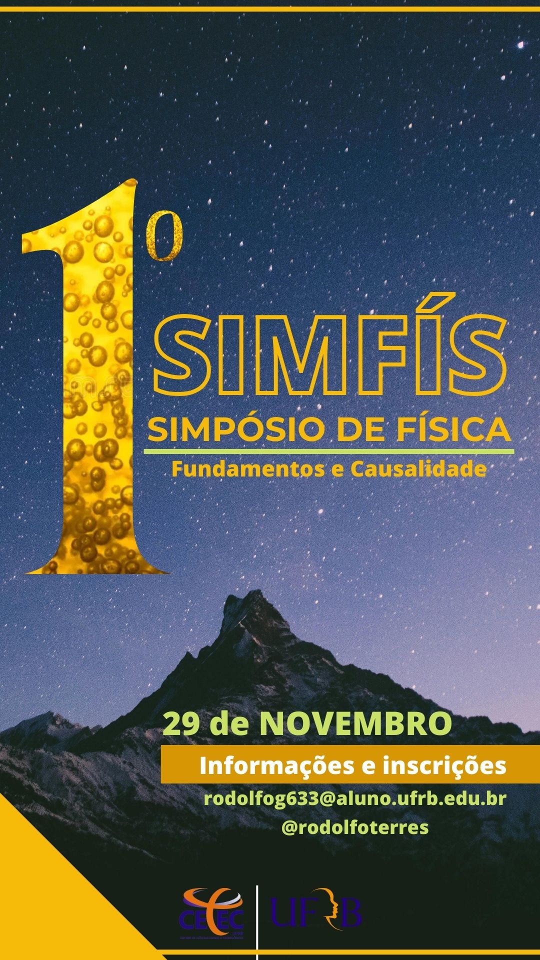 O 1º SIMFÍS – Simpósio de Física será um evento acadêmico que tem como objetivo reunir estudantes, professores e pesquisadores. Com o tema "Fundamentos e Causalidade", o simpósio busca proporcionar um espaço de intercâmbio de conhecimentos, reflexões e debates sobre as bases teóricas da física e as implicações causais observáveis nas características naturais.