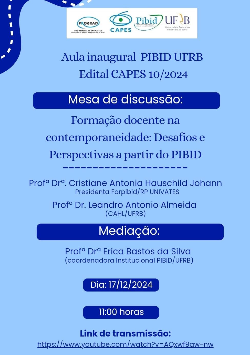 Link da transmissão: https://www.youtube.com/watch?v=AQxwf9aw-nw