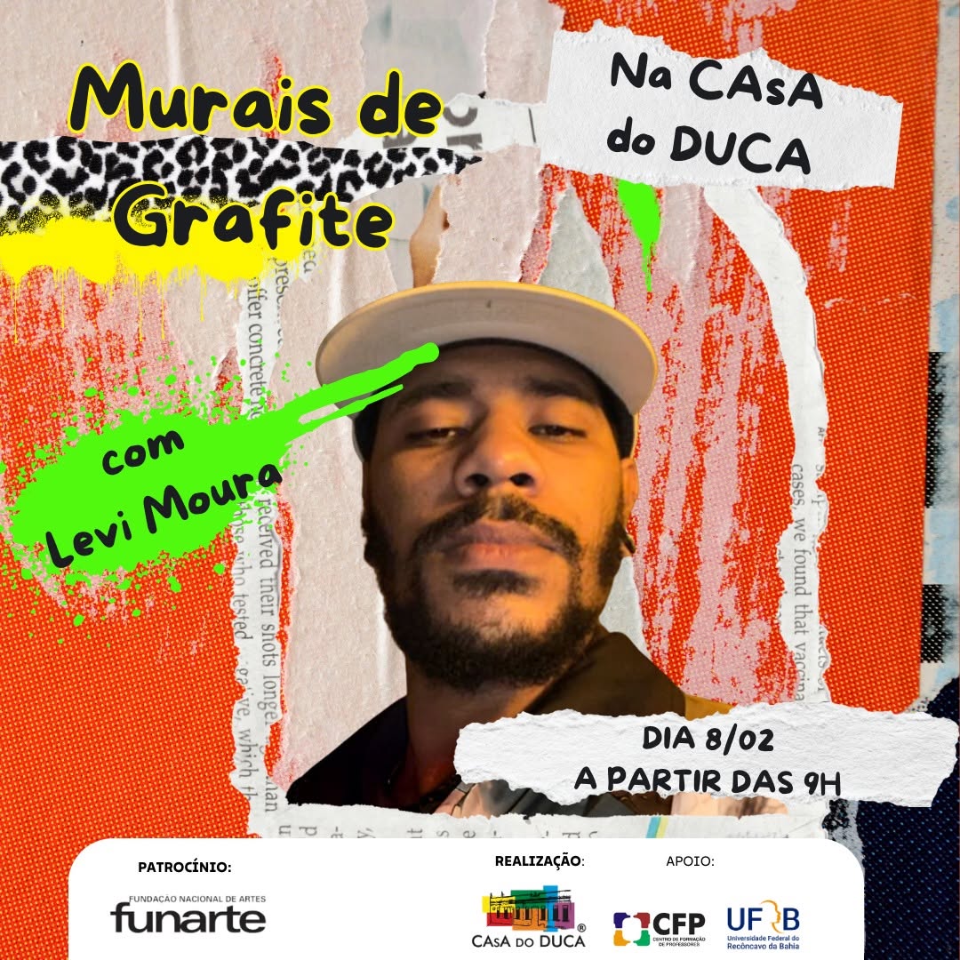 A CAsA do DUCA retoma suas atividades neste sábado, 08/02/2025, com a grafitagem de murais feitos por Luiz Gusta @luizgusta.ba e Levi Moura @e_usaciLevi iniciará a grafitagem da Sala de Leitura no sábado pela manhã, a partir das 9h. Já Luiz Gusta, abre seus trabalho no sábado a partir das 18h.Quem quiser, pode colar pra ver o processo criativo dos artistas.O trabalho de Gusta se estenderá pela semana. E na quarta-feira (12/02/2025) ele oferecerá uma Oficina de Grafitagem gratuita, das 13h às 17h, na CAsA do DUCA.Aí é só chegar junto com disposição e criatividade!Mas se atentem, porque as vagas serão limitadas a 25 participantes a partir dos 15 anos de idade!Para inscrição enviem: nome completo, data de nascimento, contato telefônico e numero do CPF para casadoduca@cfp.ufrb.edu.brNos vemos na CAsA do DUCA!