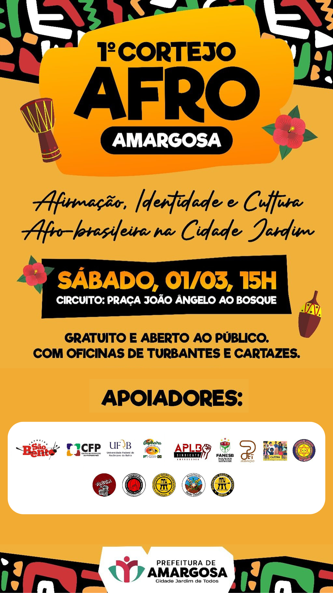 Com o objetivo de valorizar a cultura afro do município, no sábado (1º), vai acontecer o primeiro Cortejo Afro de Amargosa.