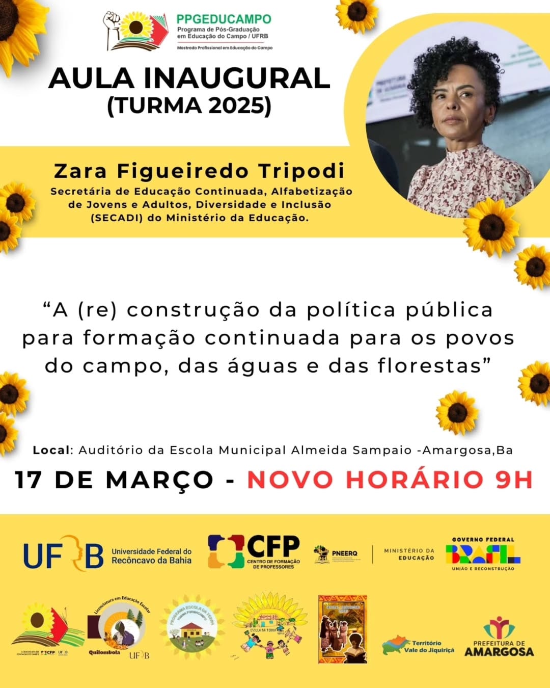 O Programa de Pós-Graduação em Educação do Campo da UFRB (PPGEDUCAMPO) convida toda a comunidade acadêmica e interessados para a Aula Inaugural da Turma 2025.