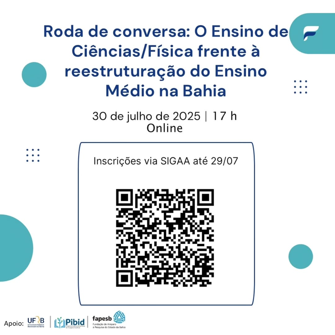 "Roda de Conversa: O Ensino de Ciências/Física frente à Reestruturação do Ensino Médio na Bahia". Expositores convidados: